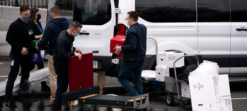 National Archives workers loading boxes outside the White House five days before President Donald J. Trump left office last year (photo: Stefani Reynolds/The New York Times)
