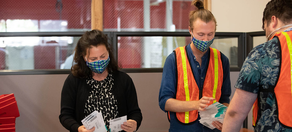 Multnomah County, Ore. staffers sort ballots for the City of Portland's Special Runoff Election Aug. 11. Oregon is one of five states that conduct all-mail elections. (photo: Motoya Nakamura)