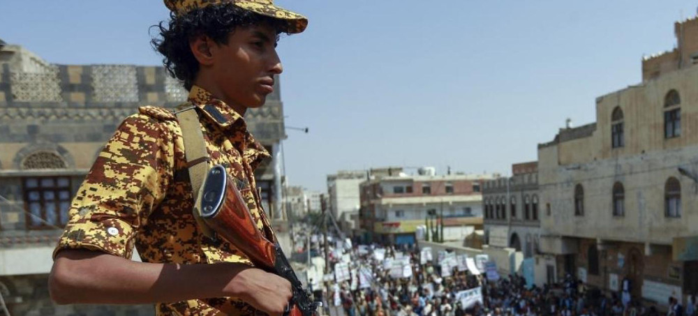 A fighter loyal to Yemen's Houthi rebels stands guard during a rally commemorating the death of Shia Imam Zaid bin Ali, in Sanaa on 14 September 2020. (photo: AFP)