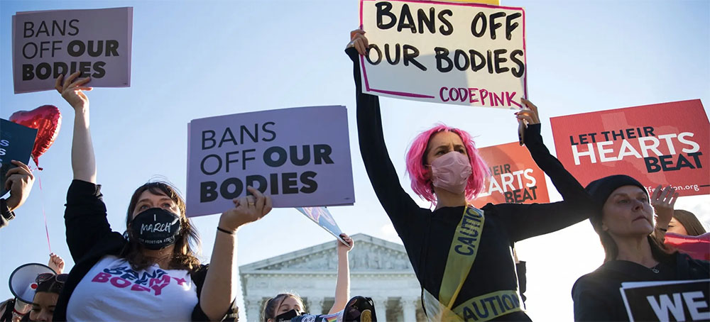Abortion rights advocates demonstrating in front of the Supreme Court in November. (photo: Tom Brenner/NYT)