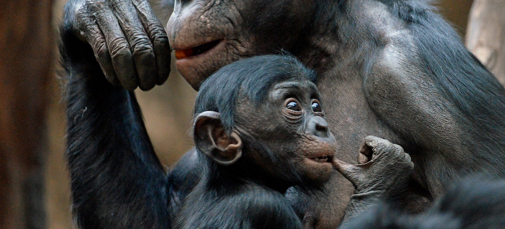 A bonobo baby in the arms of its mother. (photo: Hendrik Schmidt/Getty Images)