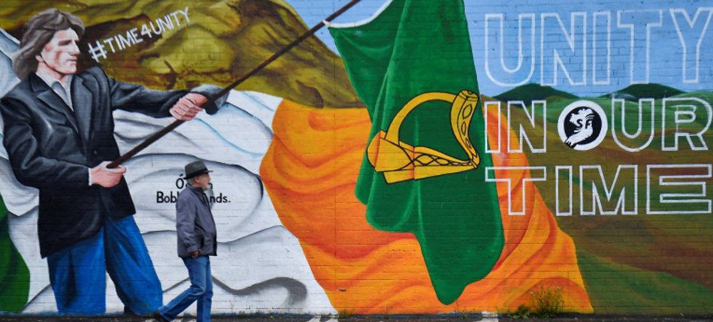 A man walks past a pro-unification mural in Belfast. (photo: Clodagh Kilcoyne/Reuters)