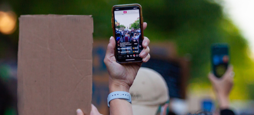 Demonstrators livestream a protest via smartphones in the Uptown neighborhood of Chicago on June 1, 2020. (photo: Javage Logan/Getty)