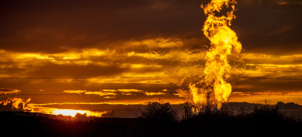 Methane flares near a well in the Bakken Oil Field. (photo: Orjan F. Ellingvag/Getty)