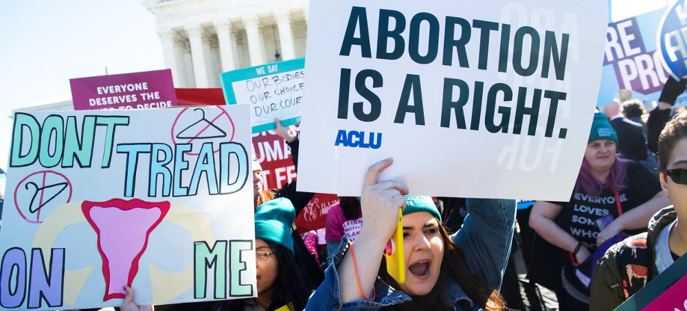 Activists supporting legal access to abortions protest during a demonstration outside the Supreme Court on March 4, 2020. (photo: Saul Loeb/Getty)