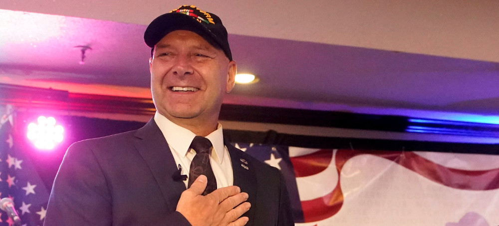 Pennsylvania state Sen. Doug Mastriano, the Republican nominee for governor, takes part in a primary night event Tuesday in Chambersburg. (photo: Carolyn Kaster/AP)