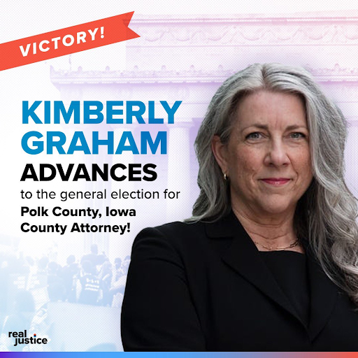 A HUGE congrats to Kimberly Graham who won her primary in Iowa and is headed to the general where she is favored to become the next Polk County Attorney.