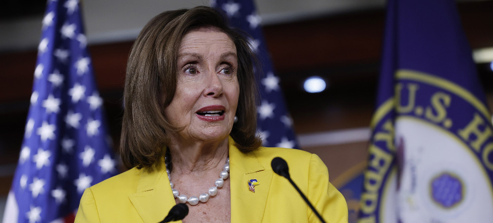 Speaker of the House Nancy Pelosi talks to reporters during her weekly news conference in the U.S. Capitol Visitor Center on June 16, 2022. (photo: Chip Somodevilla/Getty)