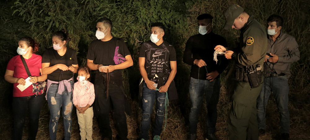 Migrants are lined up and processed by Border Patrol north of the Roma-Ciudad Miguel Aleman International Bridge in Roma, Texas, October 1, 2021. (photo: Jason Garza/Reuters)