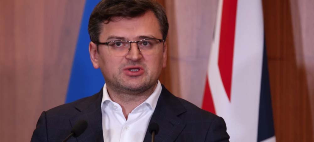 Ukrainian Foreign Minister Dmytro Kuleba speaks during a news conference. (photo: Kuba Stezycki/Reuters)
