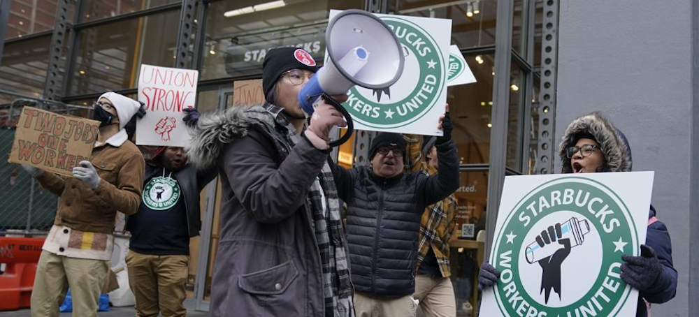Starbucks workers striking on November 17, 2022, in New York City, New York. (photo: Seth Wenig/AP)