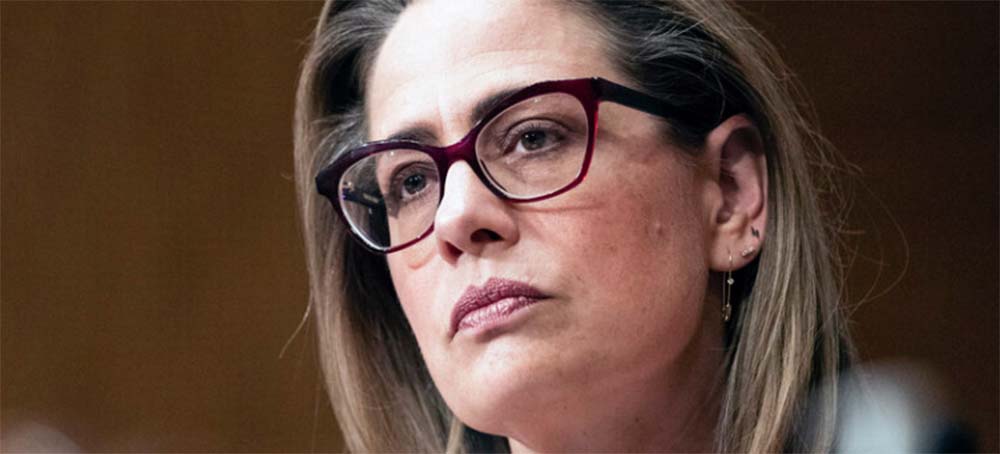 Sen. Kyrsten Sinema, D-Ariz., speaks during a Senate Homeland Security and Governmental Affairs committee hearing to examine social media's impact on homeland security, Sept. 14, 2022, on Capitol Hill in Washington. (photo: Alex Brandon/AP)