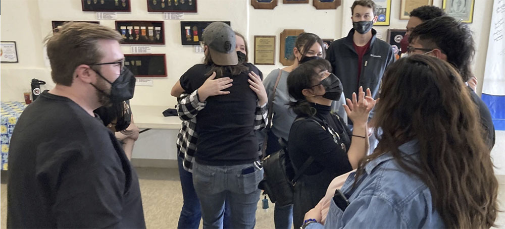 Starbucks employees in Mesa, AZ celebrate on Feb. 25, 2022 after learning election results were in favor of having their store unionize. (photo: Terry Tang/AP)