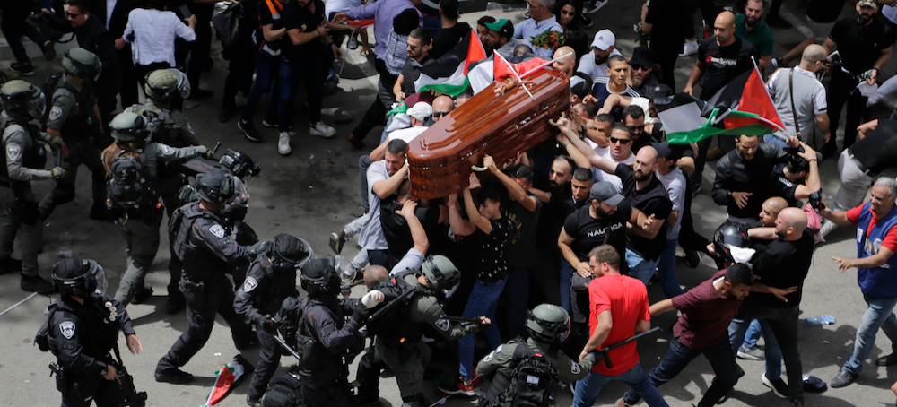 Video showed Israeli police officers attacking mourners at the funeral of Shireen Abu Akleh, a Palestinian American journalist for Al Jazeera who was killed in the West Bank. (photo: Ahmad Gharabli/Agence France-Presse/Getty Images)