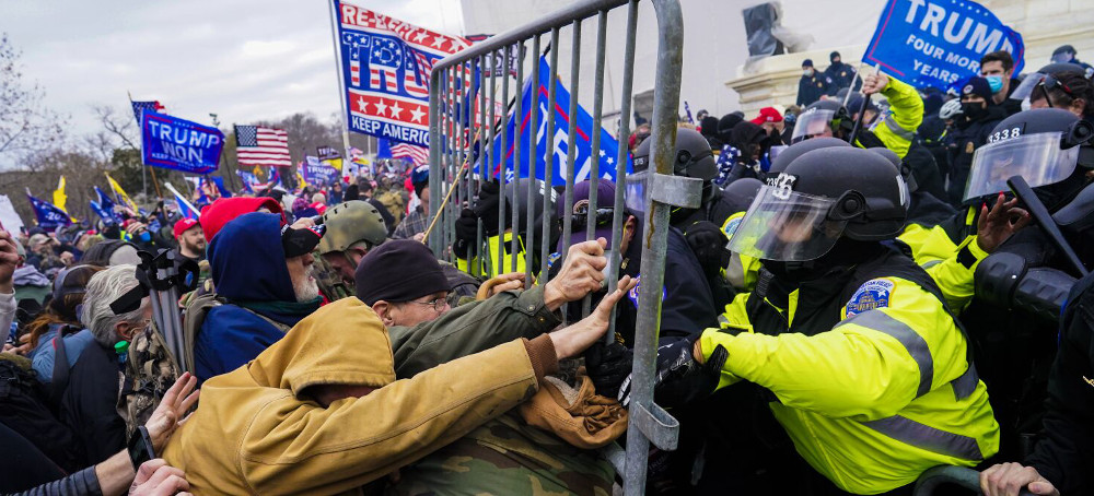 A mob loyal to President Donald Trump at the U.S. Capitol on Jan. 6, 2021. (photo: John Minchilo/AP)