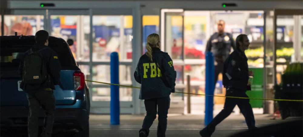 Law enforcement, including the FBI, work the scene of a mass shooting at a Walmart on Wednesday in Chesapeake, Va. (photo: Alex Brandon/AP)