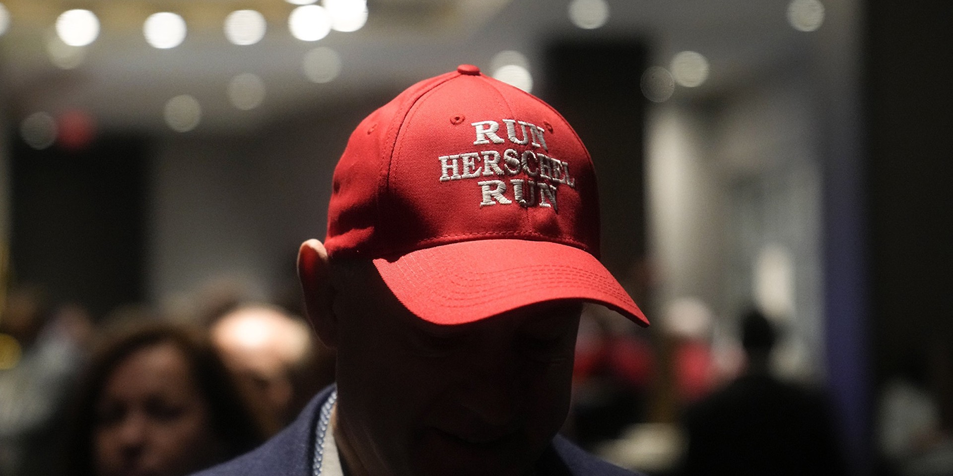 A man wears a Herschel Walker hat during an election night watch party, in Smyrna, Ga., on Nov. 8, 2022. (photo: Brynn Anderson/AP)