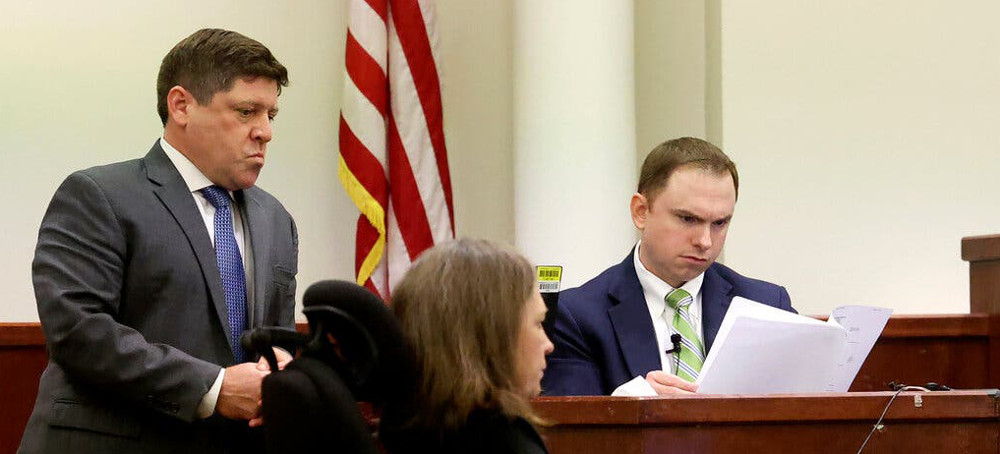 Dale Smith, assistant Tarrant County criminal district attorney, left, cross-examined Aaron Dean on Monday. (photo: Amanda Mccoy/AP)