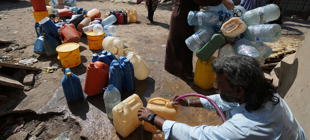 People get drinking water from a water collecting point in a slum area of Karachi, Pakistan, on Tuesday. (photo: Fareed Khan/AP)