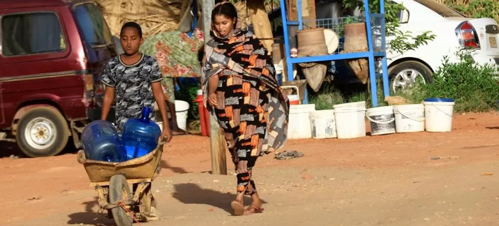 This message accompanies an address and phone number listed as one of five places in Omdurman: "Anyone who needs water, our house is open for them 24 hours."