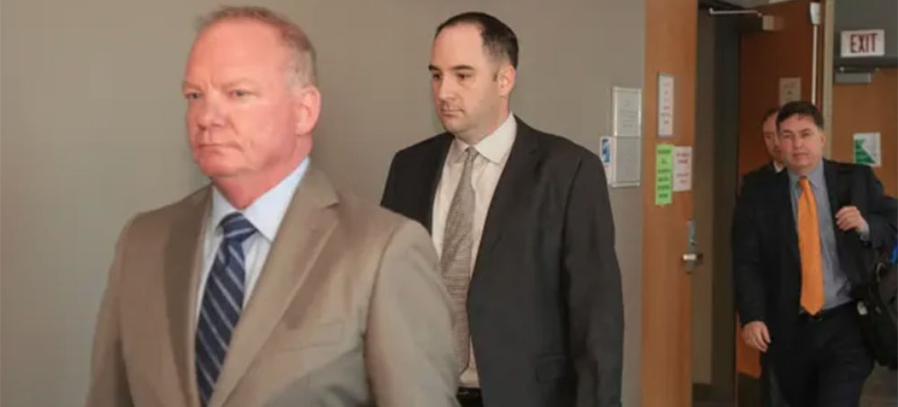 Daniel Perry, center, and his attorney Doug O'Connell, left, walk out of the courtroom during jury deliberations in his murder trial. (photo: Jay Janner/AP)