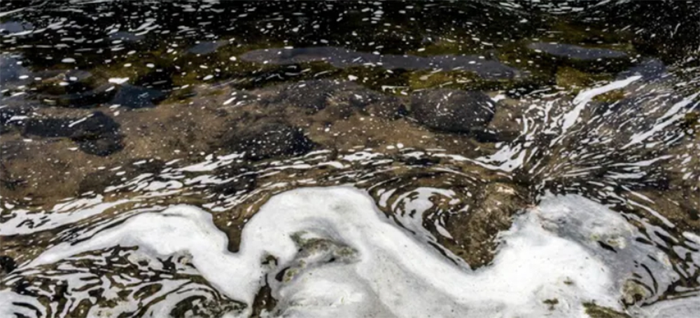 PFAS foam gathers at the the Van Etten Creek dam in Oscoda Township, Michigan. PFAS have been used in an extensive array of consumer and industrial applications. (photo: Jake May/AP)