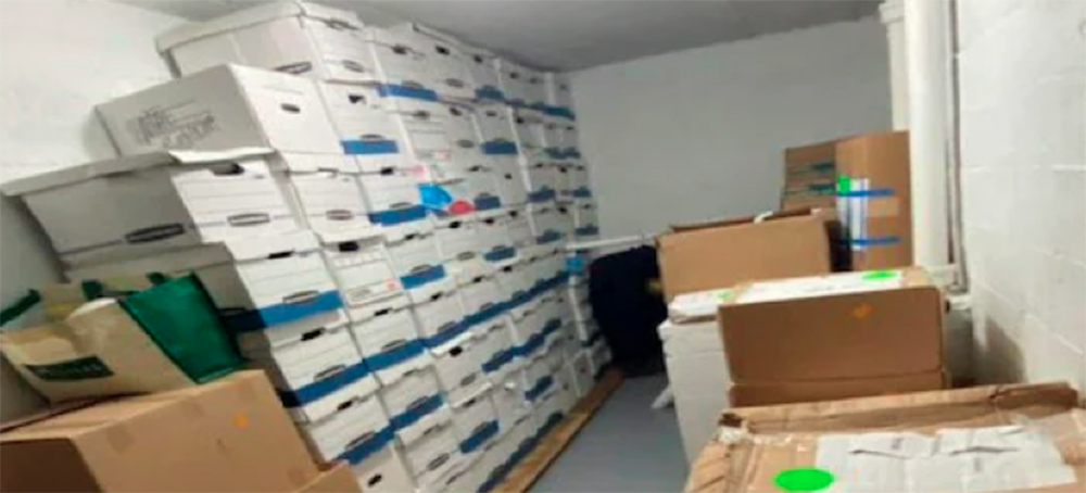 Boxes of records stored at former president Donald Trump's Mar-a-Lago estate in Florida, in an image included in his indictment. (photo: Justice Department/AP)