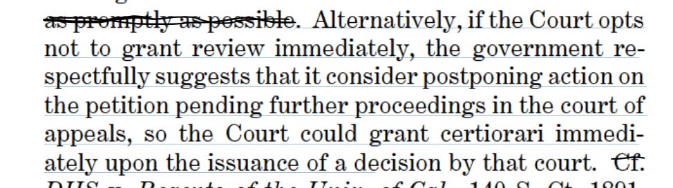 One possible bright spot: There were no dissents from denial of certiorari in advance of judgment. If this decision had signaled some sort of move by a majority of the Court to prevent any of the Trump cases from going to trial before the election, we could have expected to see one or more of the liberal Justices dissent from the denial. The fact that none of them did may suggest that there isn’t dissatisfaction about the path forward and its likely speed. Or so we can hope.