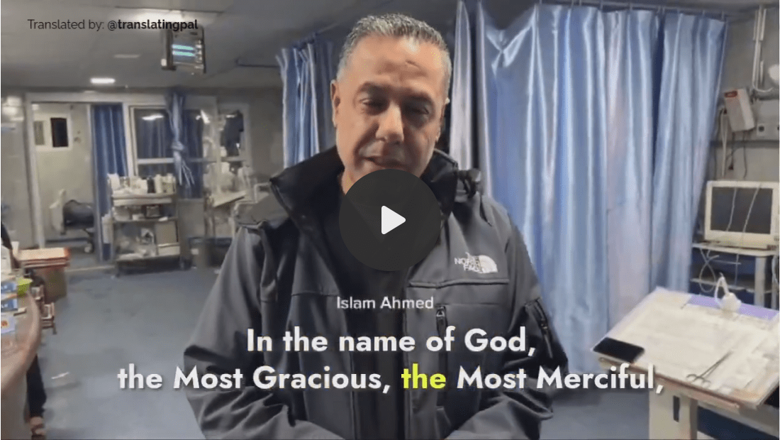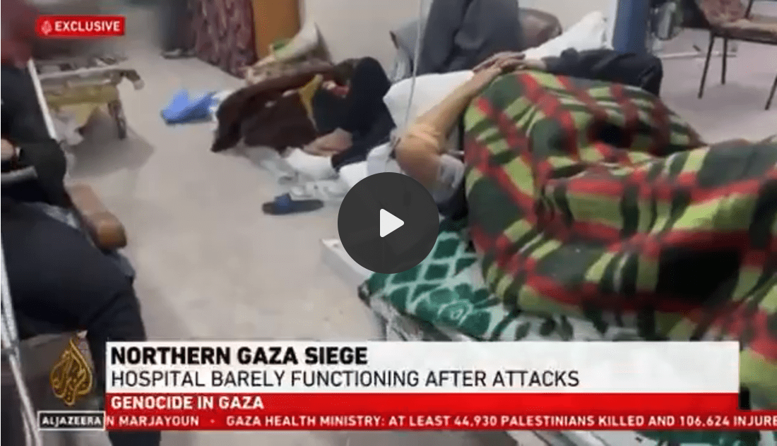 Hussam Abu Safiya, in a video from December 16. It shows damage to Kamal Adwan Hospital, where Israeli snipers targeted staff inside northern Gaza’s only ICU. Israel also bombed the hospital’s generators, cutting electricity entirely, while drone strikes continue to hit its yard, windows, and gates / @translatingpal