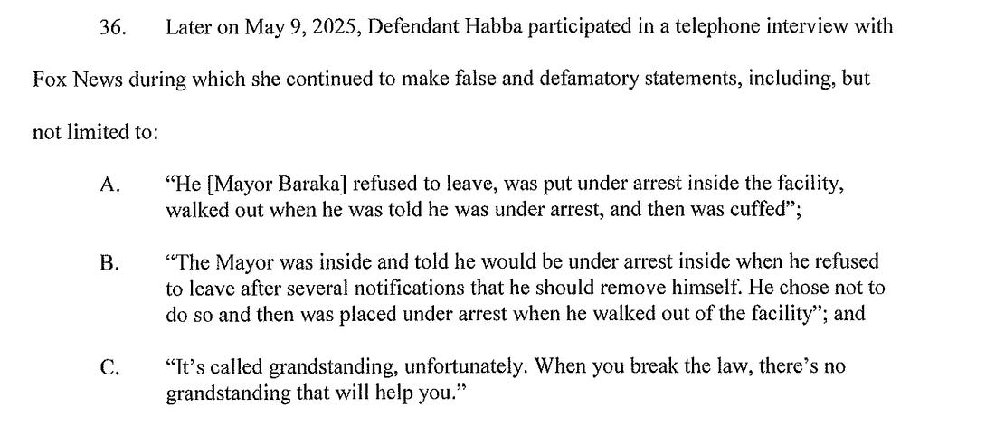 Baraka is arguing Habba and Patel acted in their personal capacities because immunity doctrines make for a difficult case against government officials acting in their official capacity and within the scope of their assigned duties. It’s a very difficult case. But Habba appears to have made both knowingly false statements that could support at least the defamation charge and the political flavor of the behavior gives the case at least some appeal. If nothing else, it’s an unwanted reminder that the brand-new U.S. Attorney in New Jersey has behaved in an unabashed and inappropriate political fashion, carrying water for her former client, now the president.