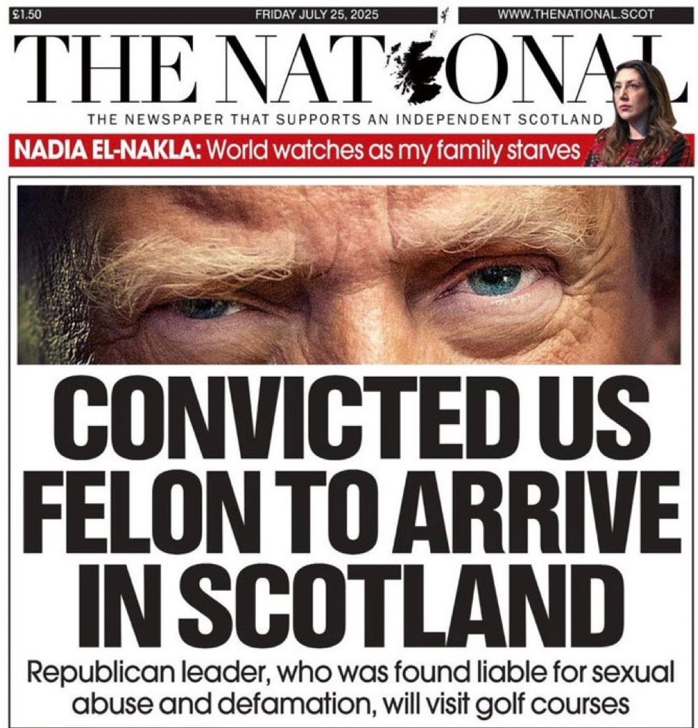 Today in Politics, Bulletin 178. 7/25/25… Fox reported that Ghislaine Maxwell is seeking a pardon from Trump after her second meeting with Dep. AG Todd Blanche today. Her attorney David Markus: “We are going to take it one day at a time. Things are happening so quickly. We haven’t spoken to the president about a pardon just yet. But the president said this morning that he has the power to do so and we hope he exercises that power.” … This is what Trump said this morning when he was asked if he would consider a pardon or commutation for Maxwell: “I’m allowed to do it.” … ABC’s Katherine Faulders: “Ghislaine Maxwell answered questions for about 9 hours over two days after being granted a limited form of immunity.” … Trump became annoyed that he kept getting Epstein questions as he was leaving the WH to fly to Scotland: “They should focus on Larry Summers , Bill Clinton, and lots of closer friends of Jeffrey Epstein. I had nothing to do with the guy.” … Q - What are you hoping Todd Blanche gets out of the meeting with Ghislaine Maxwell? Trump: “People should really focus on how well the country is doing or the fact that Barack Hussein Obama led a coup.” … Q - How do you think the Supreme Court's ruling that benefited you on presidential immunity would apply to Obama? Trump: “He has done criminal acts, no question about it. But he has immunity and it probably helps him a lot. He owes me big. Obama owes me big.” … Q - Do you maintain that you did not write a letter for Jeffrey Epstein's birthday? Trump: “Somebody could've written a letter and used my name.” … Rep. Eric Burlison (R-MO) was asked by CNN’s Manu Raju whether he is hearing from constituents about the Epstein files: “It's the No. 1 phone call that we get by far. It's probably 500 to 1.” … Rep. Ralph Norman (R-SC), who just announced his candidacy for governor: “You’d have to have your head in the sand to say that this is going to go away.” … NYT also published a photo where Trump signed a copy of his 1997 book Trump: The Art of the Comeback to Epstein, writing, “To Jeff — You are the greatest!” … Trump posted: “Democrats have gone absolutely CRAZY, and are playing another Russia, Russia, Russia Hoax but, this time, under the guise of what we will call the Jeffrey Epstein SCAM. As things are revealed and, I hope will take place quickly, you will see that it is yet another Democrat CON JOB. Hopefully, the Grand Jury Files will put an end to this HOAX. Everyone should see what is there, but people who are innocent should not be hurt.” … The grand jury transcripts will not be released, as he knows. The Epstein fiasco was instigated by his own supporters, not Democrats. When he’s talking about protecting “innocent people” he’s referring to his previous statement that he only wants AG Pam Bondi to release materials that she deems “credible” - which means nothing with his name on it. … But Aaron Rupar reports that Fox remains laser-focused on Tulsi Gabbard’s Obama hoax: “Total mentions on Fox Business yesterday: Obama-101. Epstein-5.” … Rep. Robert Garcia (D-CA) on MSNBC: "Maxwell is a bad person who has hurt young girls and young women. She should not be trusted. She's already lied multiple times under oath. I am sick that folks in the MAGA world are somehow giving her some kind of grace. She's a monster!” … Garcia also talked about how Democrats should handle the situation: “We should not be scared of what's in those files. We don't care who you are, how powerful you are, if you're in politics, what party you are, the amount of money you have — if you've committed these horrific crimes, it should be out to the American public." … VP JD Vance continues to duck and dodge around Trump’s Epstein problems: “It's bogus for the WSJ to publish a hit piece without showing us the letter. I have no idea if the book exists - WSJ won't show it to us. I have no idea if the letter exists - WSJ won't show it to us. What I find absurd is the idea that Trump was writing poems to Epstein, and I find it equally absurd that a major American paper would attack the president without revealing the basis for the attack.” … Vance: “We all know what's going to happen. They're going to dribble little details out for days or weeks in an effort to assassinate the president's character. They won't show us this book or allow us to refute it until they've wrung every bit of fake news out of the story. And everyone will just move on from the fact that the WSJ is acting like a Democrat SuperPAC. It's disgraceful, and it's why the president sued.” … Neera Tanden responded to Vance: “Does Trump not remember drawing a nude picture to a pedophile? Did he do that so much he needs a physical evidence reminder? If someone asked me if I did that I could say no without looking at the document. Trump couldn't because he did it.” … Rep. Eric Swalwell (D-CA) suggested Vance is secretly stabbing Trump in the back on Epstein: “Vance hung out with the owner of the WSJ on the eve of this story being published. What did they talk about? This is an insane response. What does he know? And what did he put in motion against his boss?” … NYT: “This spring, the FBI and DOJ made an all-out push involving hundreds of employees to scour the Jeffrey Epstein files with a single goal in mind — find something, anything, that could be released to the public to satisfy the mounting clamor from the angry legions of Trump’s supporters. During the inquiry, DOJ officials diverted hundreds of FBI employees and fed prosecutors from their regular duties to go through the documents at least 4 times — including once to flag any references to Trump and other prominent figures.” … House Oversight Ranking Member Robert Garcia to Meidas: “There were Republicans on this committee who had said they wanted to release the files. So we knew that. We also knew they weren