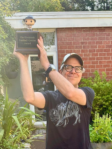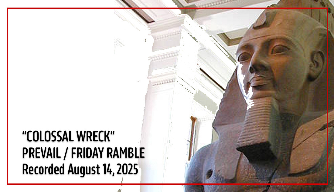Ramble On: Colossal Wreck (video)Trump is so thirsty for prizes, so desperate for glory, he'd proudly accept the Montgomery Burns Award for Outstanding Achievement in the Field of Excellence.Good morning! Hello, thank you, and welcome to my new subscribers. Here is today’s ramble: And here is the transcript, edited for clarity: Good morning. As you’re watching this, it’s Friday morning, August 15th. I’m recording it at nine o’clock at night on Thursday, August 14th. I guess right now Trump is probably nervous, anticipating his big summit meeting in Alaska with his overlord. And it will be interesting to see how that turns out. We’ll talk about that on the show tonight, which I hope everybody watches: The Five 8 at eight o’clock tonight. That’s where we’ll talk about the more heavy-duty things, but for now, I want to talk about something a little more light. So I always had this running joke, when we used to do The Weeklings, which is my old arts and culture site that I did with some friends of mine—a blog, I guess you can call it. I used to joke that I wanted to win the MacArthur Genius Award. And I would say, “Another year goes by and I’ve not been recognized as a genius by the MacArthur people. Oh well.” And you know, that was joke—a running joke. Although part of me likes the idea of this group of people, nobody even knows who they are, but they have MacArthur Powers, and they just decide that somebody is going to get money this year, and be acknowledged as a genius, for their body of work. Which struck me as probably the only way I would ever be able to win anything. I’m still holding out hope for the MacArthur Award, but I’m not, like, lobbying for it. However, I did win a Genius Award, and I want to share it with you. This is the Electronic Football Genius Award, which I won because I won my Fantasy Football League, and this is what I got. I get to keep this for a whole year. It is a trophy, is an honor, it is a privilege, and it means that I did something. I went out and I beat eleven other guys at fake football. I did that! Now, the reason I’m bringing this all up, of course, is because the President of the United States—among all the many other things that we’ve discussed on this website, on the show, on the podcast—is obsessed, Donald Trump is obsessed, with winning awards. He’s obsessed with this weird glory—you know, he wants the laurels. I think he fantasizes about that the time in old Rome when he could have the parade and literally get his flowers. I think that he fantasizes about that time, which doesn’t really exist anymore. So he’s, like, inserting himself into these awards—lobbying for him to win awards. There was a report in The Guardian, which actually came from a report in the Norwegian press, that Trump last month called up the finance minister of Norway, just out of the blue one day, and was like, “Hey, yeah, tariff, tariff—hey, Jens, tell me about the Nobel Prizes because, I don’t know if you know, but I’ve been nominated for a Peace Prize,” blah, whatever he said. There’s nothing more gauche than lobbying for a Nobel Peace Prize. I mean, it’s really next-level gauche. Who does something like that? I think you should be ineligible to receive that particular award just for cultivating it in the way that he’s cultivating it. But it’s not just that. You know, it’s also the Kennedy Center Honors. He wants to host the damn thing. He wants to hand out the awards himself. He wants the thing to be named after him, probably. This is a guy who basically spent his entire career putting his name on everything. He literally made money by licensing other people to put his name on things. So he’s big into this vainglory, right? This kind of “Me, me, me! I want to be the best. I want to be acknowledged as the greatest, as the genius, as the peacemaker, as the best supporting actor,” whatever. That’s what he wants. And maybe Putin will give him the Lenin Medal or whatever the fuck it’s called in Alaska today. And he can have that too. But he wants these things. I guess it’s a strongman thing. These dictator types all have their stupid medals all over their jackets and stuff. But Trump doesn’t have any medals, Lord knows, because there’s no medal for bone spurs. But he wants to win these awards so badly, he’s so thirsty to be acknowledged. He’s thirsty, and it’s the same kind of need that he had growing up in Queens and wanting to be accepted by the elite in Manhattan. And even though he is the President of the United States for the second time, he’s never going to get the recognition that he wants—because he sucks, and everyone knows it. So what he’s going to do is, he’s going to use the presidency to build up his own legacy. He wants to put his name on things. You think Trump doesn’t want a monument in Washington named after him? I think he’d like to name the whole city after himself, honestly, and would if he could. And it reminds me of a poem, one of my favorite poems, by Shelley, called “Ozymandias.” It’s a sonnet. It goes like this: I met a traveler from an antique land who said, “Two vast and trunkless legs of stone stand in the desert. Near them on the sand, half sunk, a shattered visage lies, whose frown and wrinkled lip and sneer of cold command tell that its sculptor well those passions read which yet survive, stamped on these lifeless things—the hand that mocked them and the heart that fed. And on the pedestal, these words appear: ‘My name is Ozymandias, King of Kings; look on my works, ye mighty, and despair!’ Nothing beside remains. Round the decay of that colossal wreck, boundless and bare, the lone and level sands stretch far away.” And that’s it. The decay of that colossal wreck. I can’t think of a more poetic descriptor of Donald Trump than that. He is a colossal wreck. And he’s not going to win his damn awards. Nobody likes him. And he ca