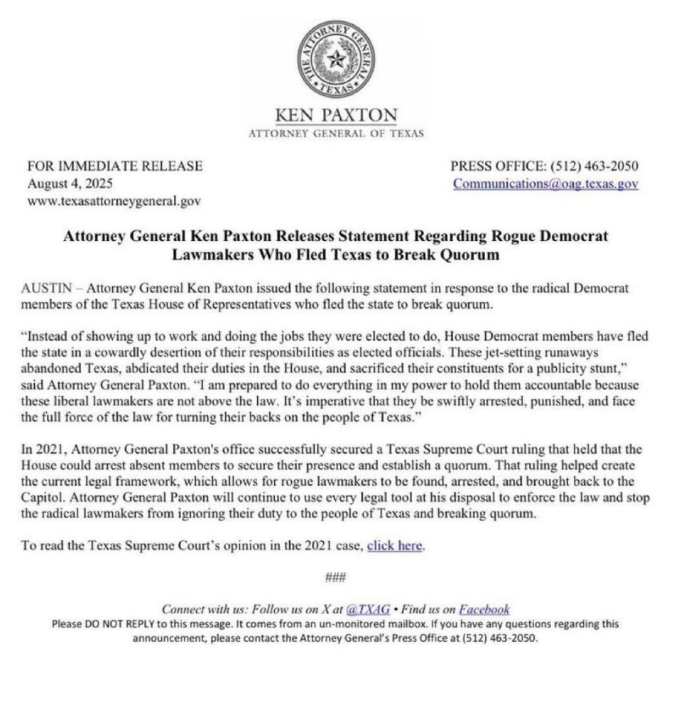 THE DAILY DEAN — Tuesday, August 5, 2025Canada Leads. Trump Censors. Texas Arrests Lawmakers. Welcome to Tuesday. A wild day in North American democracy: from Gaza aid to Epstein redactions and GOP authoritarian cosplay.Good Morning! Here are the top five headlines democracy lovers need to know today. 1. DOJ Grand Jury Targets Obama-Era Intelligence OfficialsThe Department of Justice has impaneled a grand jury to investigate whether members of former President Obama’s administration manipulated intelligence reports related to Russia’s interference in the 2016 election. This move - highly political and timed with Trump’s re-election campaign and another BS distraction from the Epstein Files - is being framed by critics as yet another authoritarian play to criminalize political opposition and rewrite history. Sources say subpoenas are being issued for communications tied to early intelligence briefings and talking points delivered in 2016. Legal experts are warning that this sets a dangerous precedent: criminalizing routine inter-agency intelligence assessments to score partisan points. Context: This comes just days after Trump reportedly demanded new DOJ loyalty oaths and floated criminal charges against “disloyal” diplomats and bureaucrats. 2. Texas Republicans Issue Arrest Warrants for Fleeing DemocratsThe Texas GOP is going full banana republic. Republican House members voted to issue civil arrest warrants for Democratic legislators who fled the state to block a GOP redistricting bill. That’s right—civil arrest warrants, like it’s 1855. Republicans claim they’re enforcing duty; Democrats say they’re resisting an authoritarian legislative takeover. Democratic lawmakers are hiding out of state while Republican leaders ask Texas law enforcement to track them down and bring them back to the chamber in handcuffs. You know, like lawmakers do in healthy democracies . 3. ๐ Canada Delivers First Aid Airdrop into GazaIn a major humanitarian milestone, Canada completed its first official airdrop of food and medical aid into Gaza, becoming the first Western country to do so independently. Prime Minister Mark Carney authorized the operation after direct talks with Egyptian and UN officials stalled, citing the urgent need to bypass blockade delays and respond to soaring civilian casualties. The aid—consisting of emergency food, trauma kits, and pediatric supplies—was dropped overnight in coordination with Jordanian logistics teams and monitored by drones to ensure safe delivery. Carney’s office said this act “reinforces Canada’s role as a sovereign humanitarian leader unwilling to be bullied by regional strongmen or paralyzed by multilateral gridlock.” ๐ก Meanwhile, the U.S. remains absent, with Trump refusing to comment when asked about Gaza aid during yesterday’s briefing. 4. New Report Confirms 2024 Heat Wave Killed Over 1,000 in U.S., 150+ in MexicoA just-released retrospective study reveals that the 2024 North American heat wave was even deadlier than reported, with 1,016 deaths in the U.S. and over 150 in Mexico. The worst-affected areas? Texas, Nevada, and New Mexico—where AC access was sparse and heat shelters were underfunded. Most victims were elderly or low-income residents with pre-existing health conditions. Public health advocates are now demanding federal funding for heat emergency infrastructure, especially in underserved communities. The study comes as climate scientists warn 2025 could be worse. ๐ Reminder: Trump cut all funding for climate adaptation programs in 2024. 5. Bloomberg: FBI Ordered to Scrub Trump’s Name from Epstein Files 100,000 TimesIn a damning scoop, Bloomberg and The Daily Beast confirm that Attorney General Pam Bondi ordered the FBI to pre-flag and redact Donald Trump’s name or likeness from over 100,000 documents related to the Jeffrey Epstein investigation. Roughly 1,000 FBI agents combed through files in March, tagging Trump's name before documents were released under FOIA. Critics, including Senate Judiciary Chair Dick Durbin, say the FBI’s redaction spree was "a disgrace to transparency and a betrayal of Epstein’s victims." ๐ Why it matters: Trump was a documented close associate of Epstein and Ghislaine Maxwell. The decision to redact him—under the excuse of “protecting a private citizen”—is being seen as a corrupt political shield, especially since Epstein’s victims are still waiting for accountability. ๐งต Victims' lawyers are preparing court motions demanding unredacted access. Pressure is building for Bondi’s resignation. Why It All MattersThis newsletter is called The Daily Dean—but it could just as easily be called “The Daily Gaslight.” We’re watching Trump’s regime sanitize crimes, criminalize opposition, and starve diplomacy, all while America’s weather is killing people. Thank God Canada’s still standing tall. Mark Carney just dropped literal food and medicine into a war zone while Donald Trump drops subpoenas and redactions like candy. One leads. One hides. We’re not just watching a difference in leadership—we’re watching a difference in values. Today’s Quote